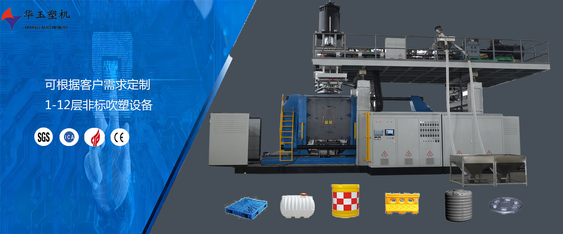 濰坊市華玉塑料機(jī)械有限公司創(chuàng)辦于貳零零貳年,是超大型全自動(dòng)中空吹塑設(shè)備專業(yè)生產(chǎn)廠家。公司融合國內(nèi)外先進(jìn)技術(shù)和理念,專業(yè)設(shè)計(jì)、生產(chǎn)、銷售一層到十層的大型全自動(dòng)中空成型機(jī)組。我公司生產(chǎn)的各型號吹塑機(jī)可生產(chǎn)50升到30,000升的各類塑料水桶,噸桶、雙環(huán)桶、水馬、路錐、隔離墻托盤、桌板、浮筒、皮劃艇、工具箱包等中空制品。優(yōu)良的品質(zhì)、穩(wěn)定的性能、優(yōu)越的性價(jià)比使公司產(chǎn)品不僅暢銷國內(nèi)市場,并出口到亞洲、東南亞、中東、歐洲、北美、南美、非洲等80多個(gè)國家和地區(qū),深受客戶的好評...